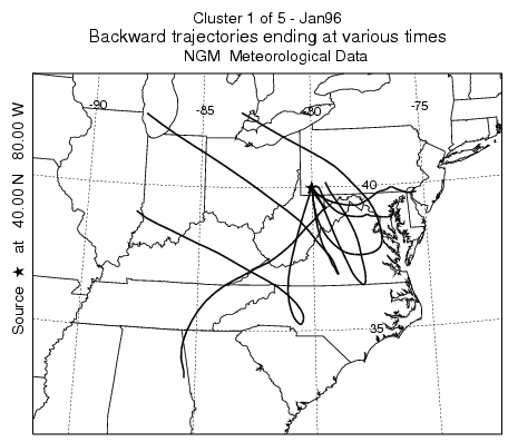 cluster-means (top left) and trajectories in each cluster (1, 2, 3, 4, and 5 below) may be created.